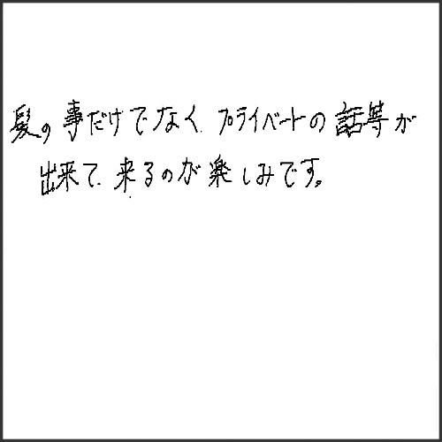 髪の事だけでなく、プライベートの話等が出来て、来るのが楽しみです。