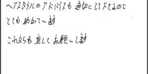 スタッフの方が一対一で対応して下さるスタイルがとても気に入っ …