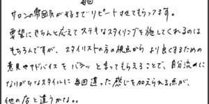 対応、カットは大変満足しています。7年目に入ったそうですので …