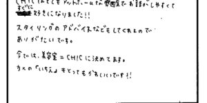姉の紹介でCHICにきました。 他の美容室ではうまく自分のしたい髪型を説明できなくて、そのあとの会話もぎこちなくなってしまいがちでしたが、CHICはとてもアットホームな雰囲気でお話しがしやすくて、すぐに好きになりました!!